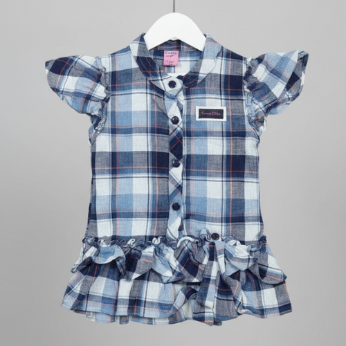 Girls Checked Top with Denim Pants Set
