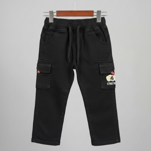 The soft striped t-shirt features a fun graphic print that adds a cheerful, playful vibe, while the full-sleeve design keeps your child cozy and comfortable. Paired with smart jogger-style jeans, this set offers a relaxed fit with modern detailing, perfect for everyday wear.