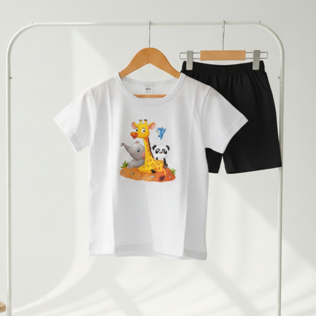 Cute Animal Print Graphic T-Shirt and Shorts Set For Kids