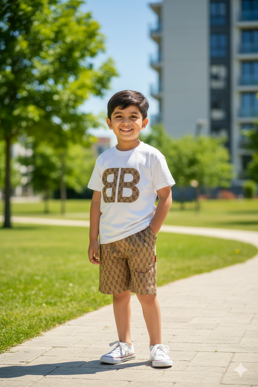 Trendy Brown & White Kids’ Short Set | Kids short set