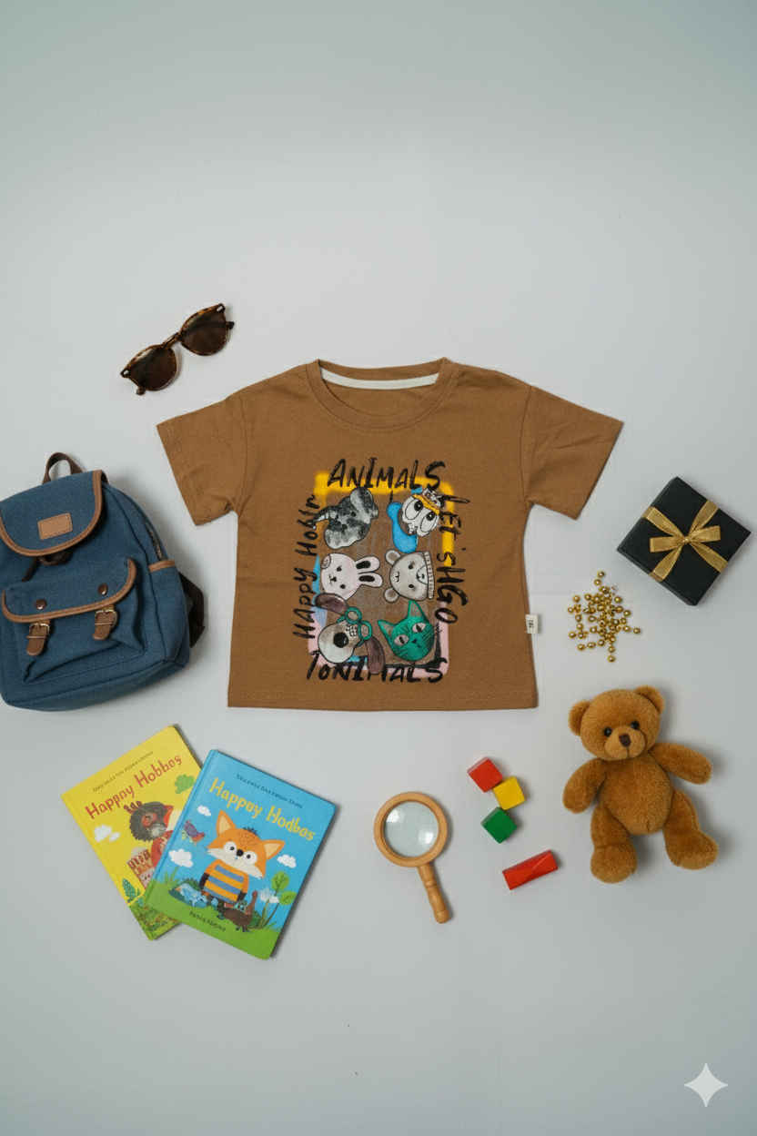 Cozy Brown T-Shirt & Bear Patch Denim Shorts Outfit | boys denim shorts set