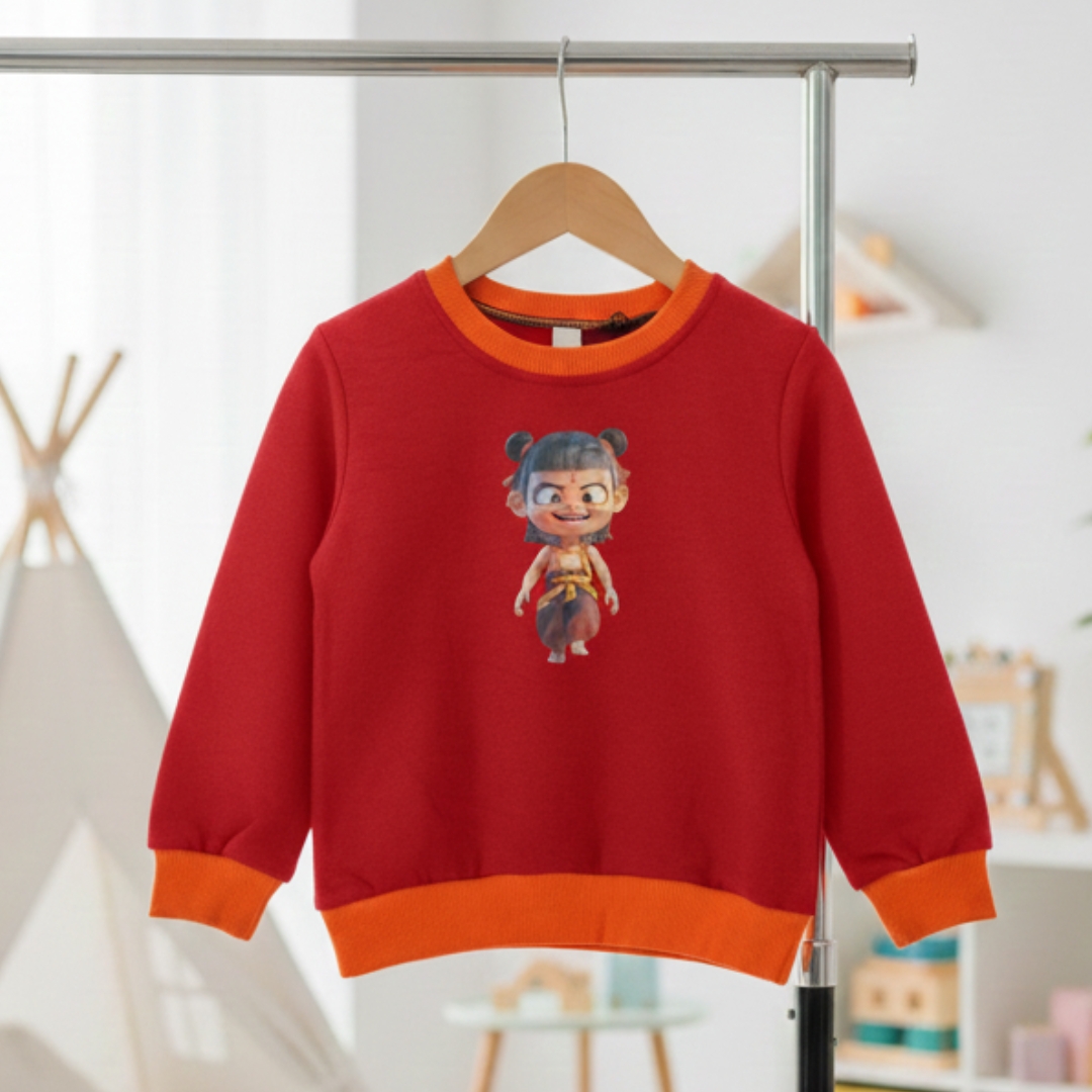 Kids Sweatshirt | Heroic Nezha Cartoon Print In Multicolors