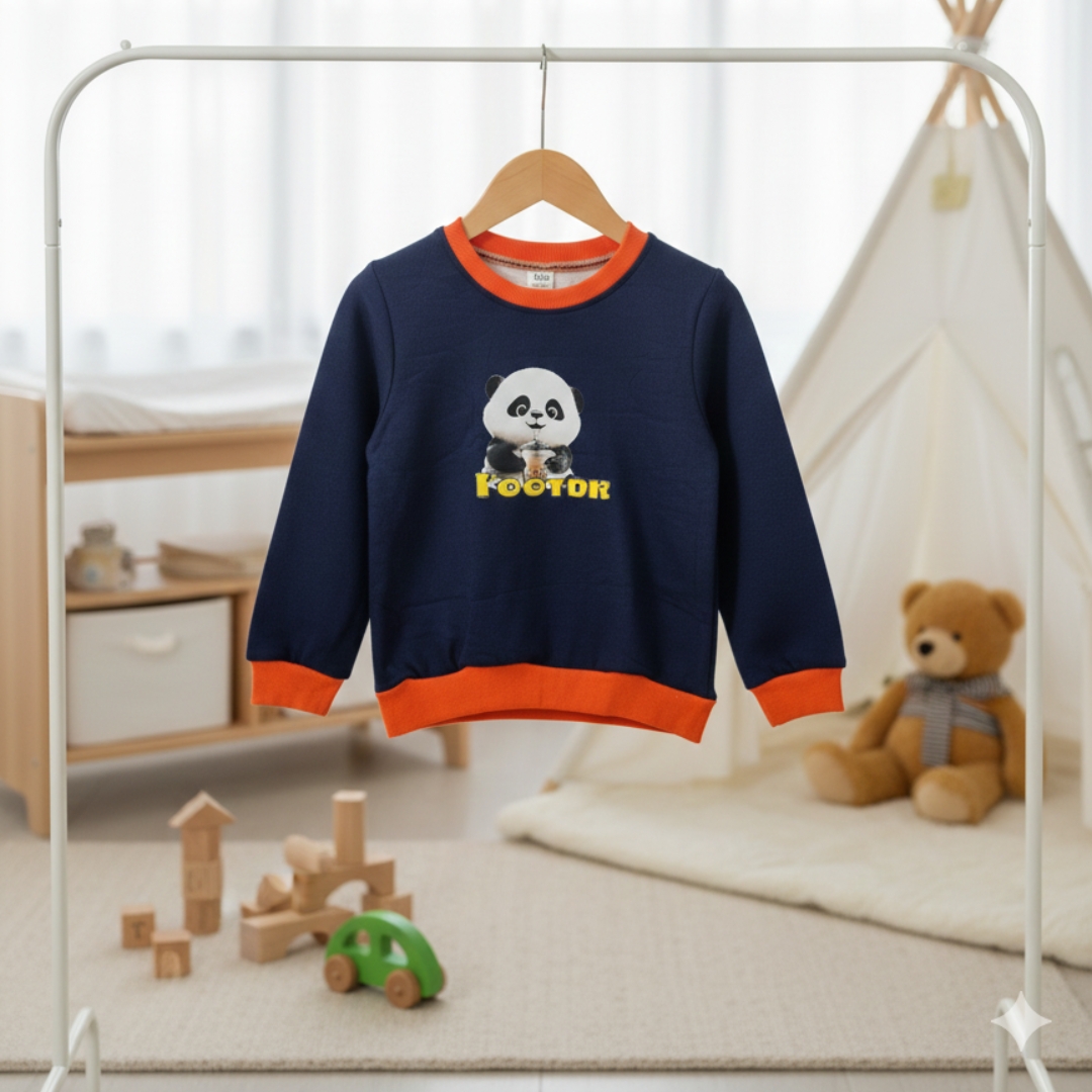 Cozy woolen panda sweatshirt for kids. Soft, warm, and stylish winter wear with a cute panda print—perfect for playtime or outings.