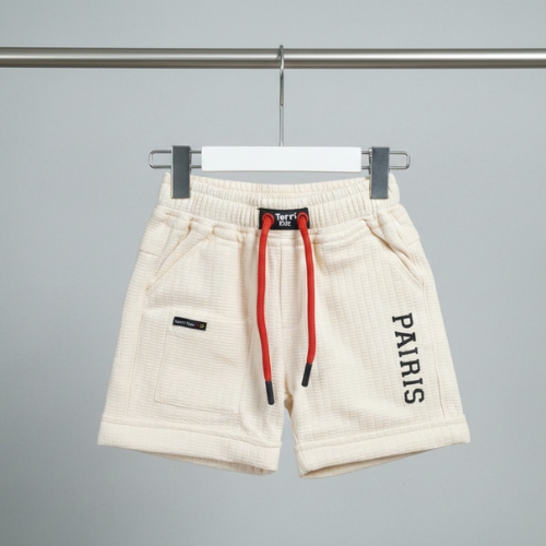 A stylish cream-toned kids shorts set featuring a soft printed t-shirt and matching drawstring shorts. Designed for all-day comfort with a premium look.
