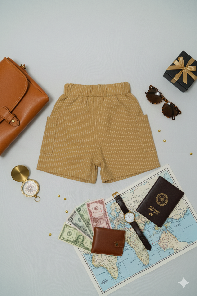 Dress your little man in sophisticated style with this dapper 3-piece set! It features a crisp white t-shirt, a charming tan pinstripe vest, and matching shorts. Perfect for special occasions, family photos, or adding a touch of elegance to his summer wardrobe.